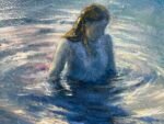 In the clear water — a young woman, suspended between sleep and awakening. Gentle ripples spread from her touch, as if the water itself responds to her presence.