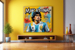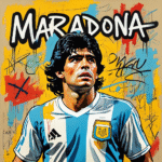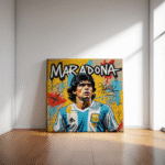 “Diego Maradona” channels the energy, controversy, and genius of one of football’s greatest icons through the bold visual language of neo-expressionist pop art.