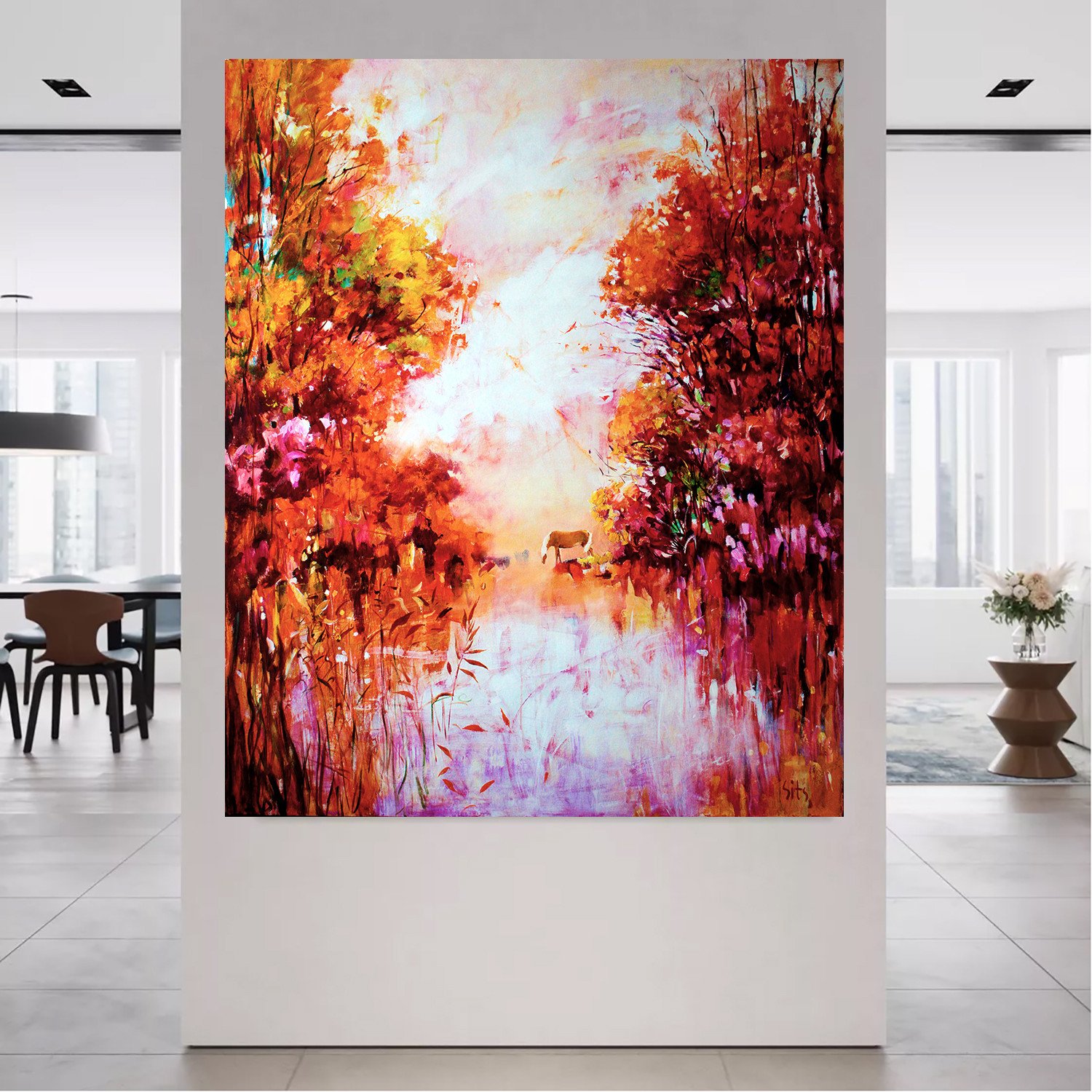 “Trees by the Water III” is an extra large contemporary-impressionistic painting